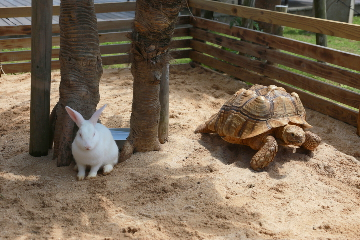 陸ガメ「でんすけ君」や、ウサギたちと和んでみてはいかがでしょうか。