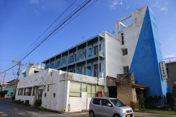 目印の「民宿久米島(別館)」です。兼城港から徒歩3分、イージーなアクセスが魅力です。