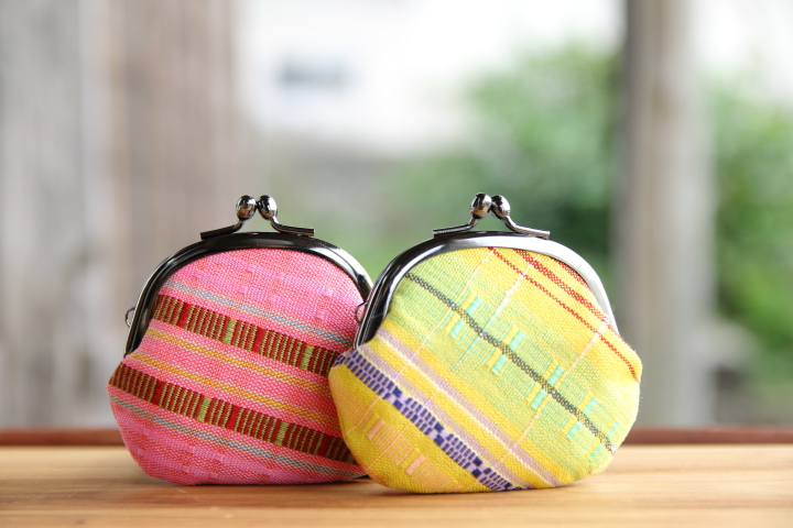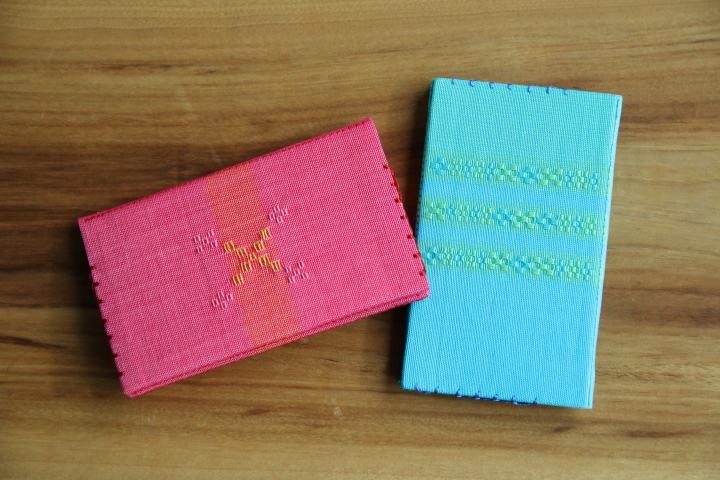 ピンクのものが花織、水色がグーシ花織でで作られたもの。