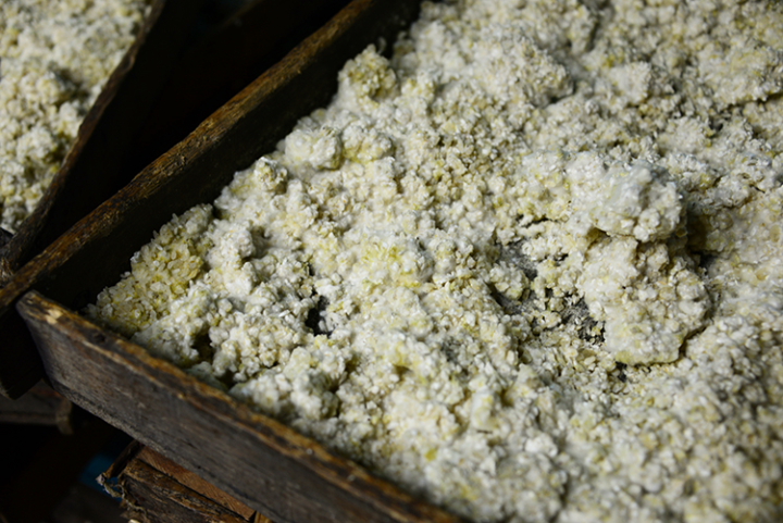 終戦直後から使用しているという麹箱に詰まっているのは黄麹。