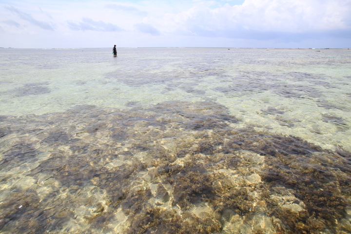 目を見張るものがあります。干潮時には、浜辺からすぐ大人の膝下程の浅場でも、
