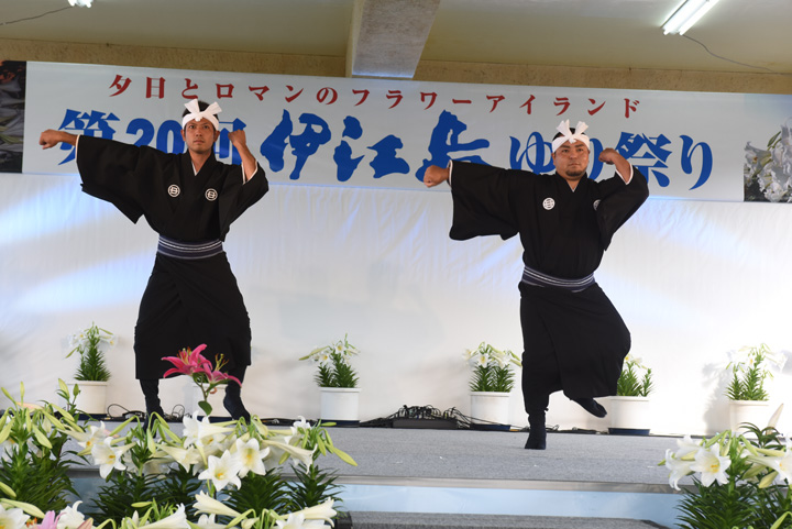 ふだんは、青年をはじめ大人が演舞するのですが、この祭りでは地元の子供たちが一生懸命演舞します。小学校では、5年生から伝統芸能を習いはじめ、学芸会などいくつかの舞台を経験しながら、最後の大舞台が、ゆり祭りの会場になるそうです。こうやって、伝統が継がれていくのですね。