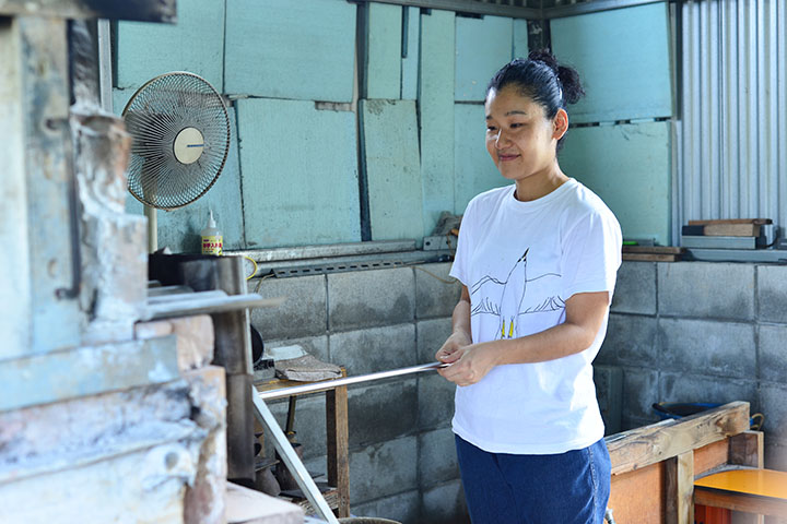 吹きガラス工房 彩砂のガラス作家、"いーくーさん"こと小野田郁子さんの作る