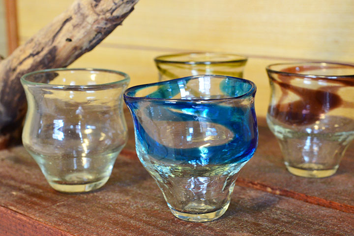 特にいーくーさんのガラスは、形や色合いに1つ1つ少し違いがあって、