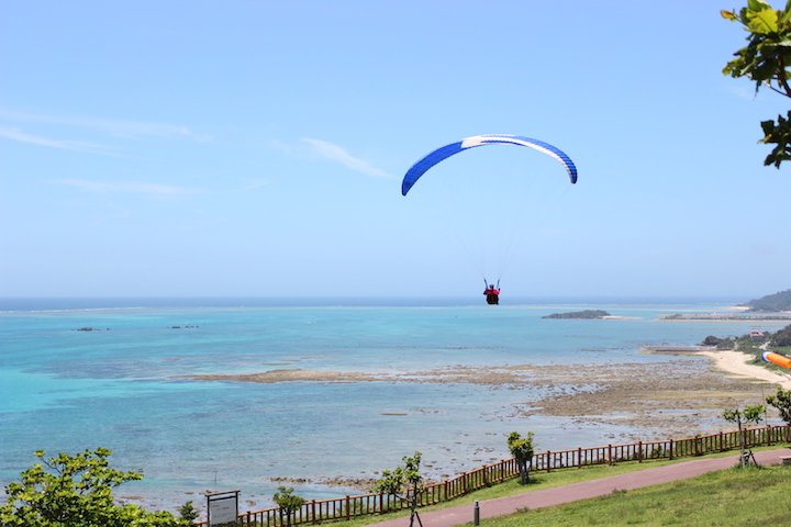 絶景スポットの「知念岬公園」に立ち寄ると、そこには青々とした海の上、気持ち良さそうにパラグライダーを楽しむ人たちが。なんだか見ているだけで、こちらも気持ちが良くなります。天候がとても良かったので、神々の島と言われている久高島も拝むことができました。その後は、父が10数年前に行ったことのあるという、世界文化遺産の斎場御嶽に初めて伺いましたよ。心をそっと落ち着かせ、日頃の感謝と祈り捧げました。